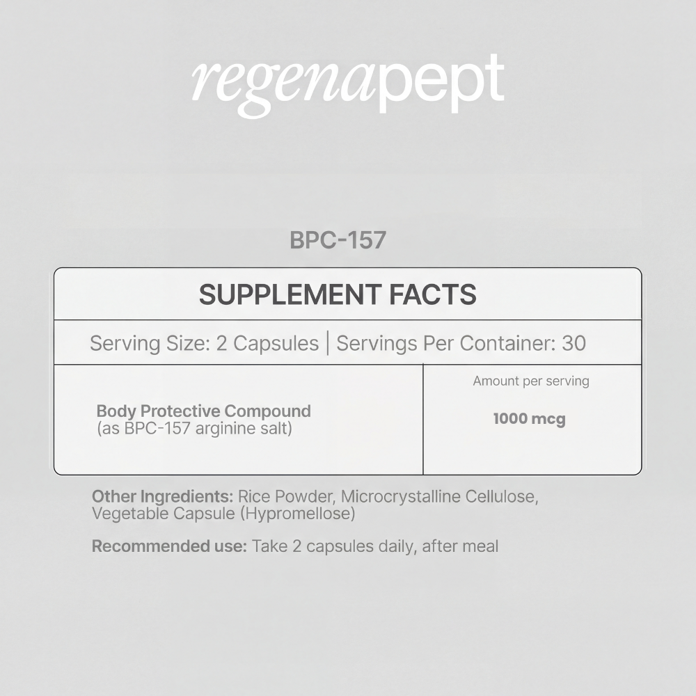 • 1000 mg of pure BPC-157 (Arginine form) for maximum absorption