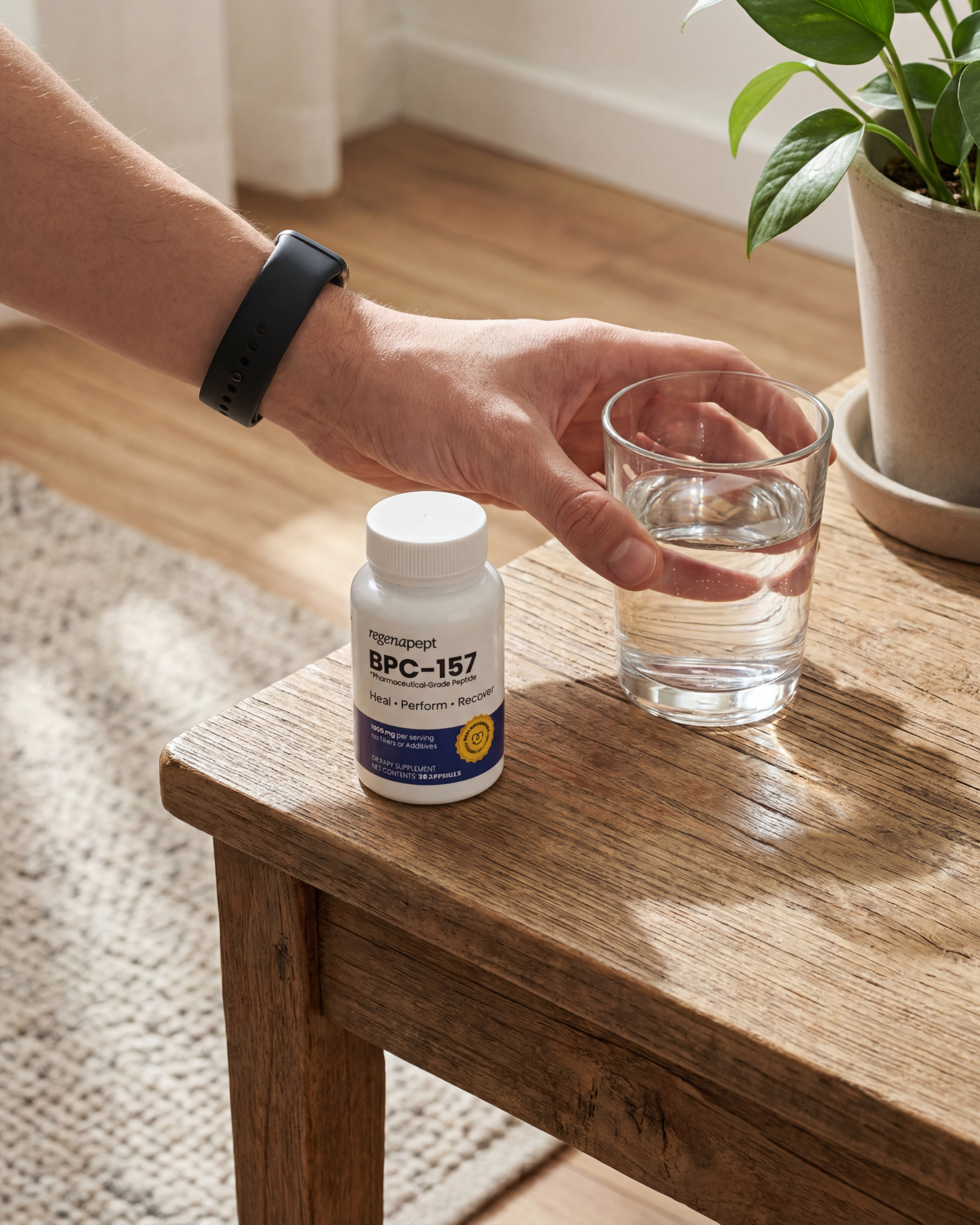 Take BPC-157 once daily as directed on the label. It can be taken with or without food, though many users prefer taking it with a meal for better digestive comfort. No injections, cycling, or complex timing are required.